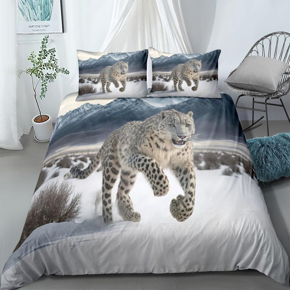 Running Snow Leopard Duvet Cover Set Uk Single Double Queen Us Twin Full King Size Pkm Bed Linen Set