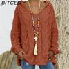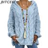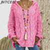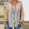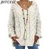 BITCED Fall/Winter Solid Color Cable-Knit Hoodie Sweatshirt for Women
