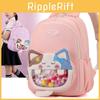 This cute cat-themed large-capacity backpack is designed for middle school stude, supporting daily school essentials. The ergonomically curved shoulder straps reduce load strain for comfortable wear. Ideal for school use, it features a spacious main compartment and multiple pockets for organized storage. Wipe clean with a damp cloth to maintain its bright appearance.