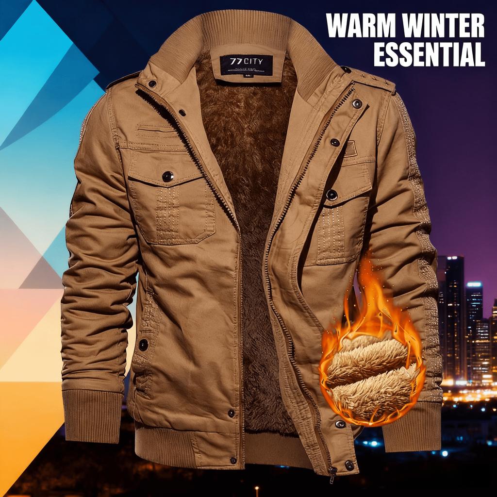 Men's Fleece Jackets Windbreaker Coats Fall Winter Thermal Bomber Jackets Multi-pockets Stand Collar Motorcycle Jacket