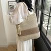 Summer new single shoulder hollow straw woven bag foreign fashion fringed woven bag vacation wind beach bag contrasting color straw bag