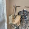Simple large capacity canvas bag women's casual solid color commuting shoulder tote bag college students class sleigh bag schoolbag