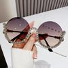 Brand Designer Luxury Diamond Round Sunglasses Women For Men Fashion Vintage Sun Glasses Steampunk Party Skeleton Shades Uv400