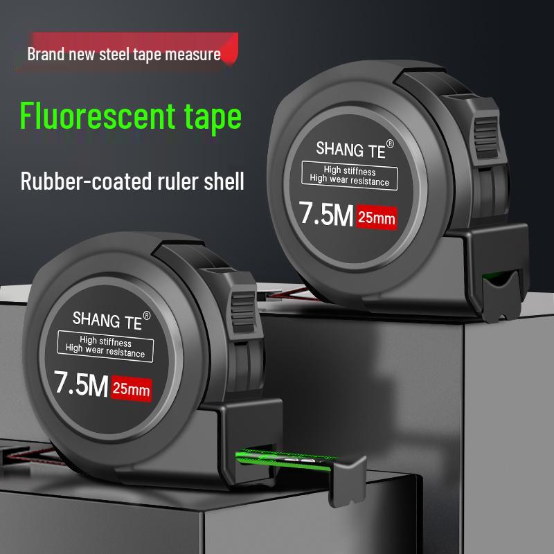 Rubberized 5m Fluorescent Steel Tape Measure - High Precision Laser Engraved Black Gold Ruler, Wear-Resistant Household Tool