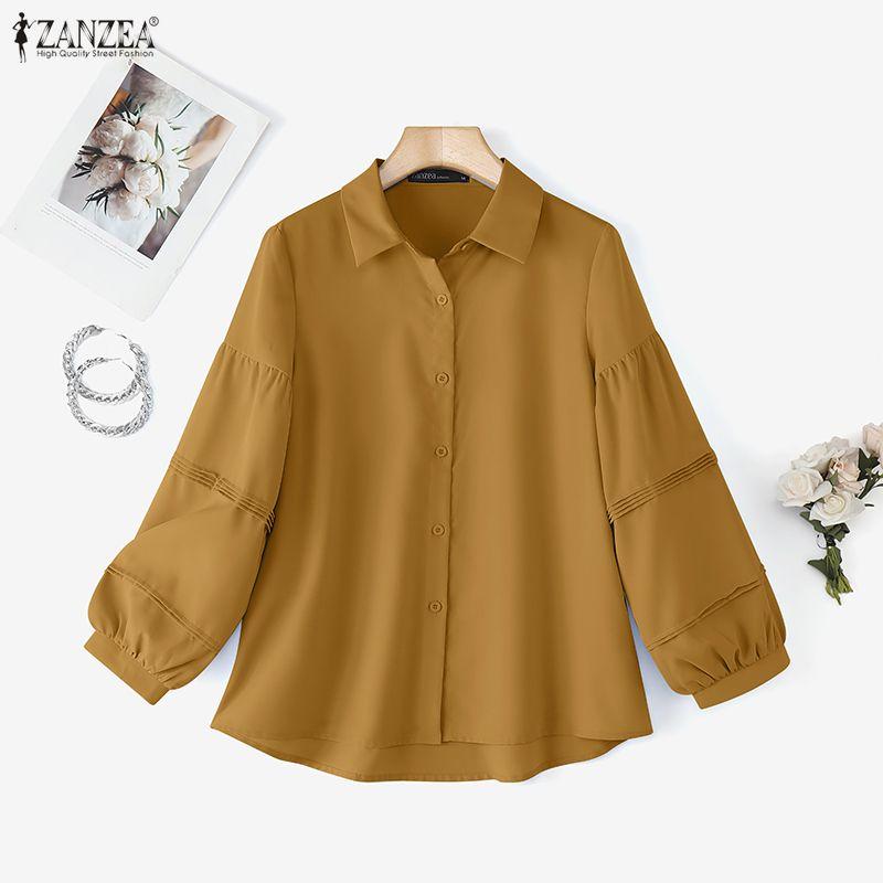 ZANZEA Dámská volná ležérní halenka s dlouhým rukávem a límečkem