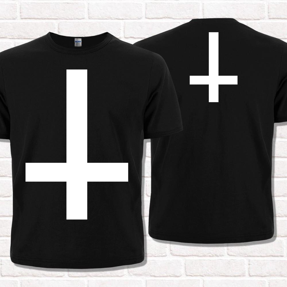 Satanistické tričko s obráceným křížem. Okultní symbolika Ďábel Bafomet 666 Démon