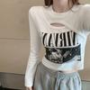 Ladies Autumn Fasshion Long Sleeve Crew Neck Slim Fit Basic Letter Printed Pullover T Shirt Crop Top for Layering