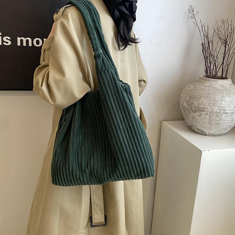 Korean ins temperament lady commuter velvet shoulder bag new literary and artistic style college student class tote bag