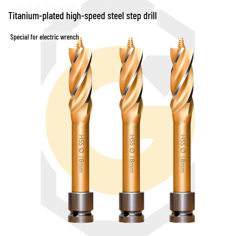 Vysokorychlostní stupňovitý vrták potažený titanem pro elektrický klíč - Otvírák otvorů do dřeva s vysokou tvrdostí a prodloužený vrtací nástroj.