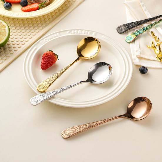 Yousheng Stainless Steel Spoon with Anti-Slip Grip Hammer Pattern Design Soup Rice Noodles Spoon Multifunctional Kitchen Tool