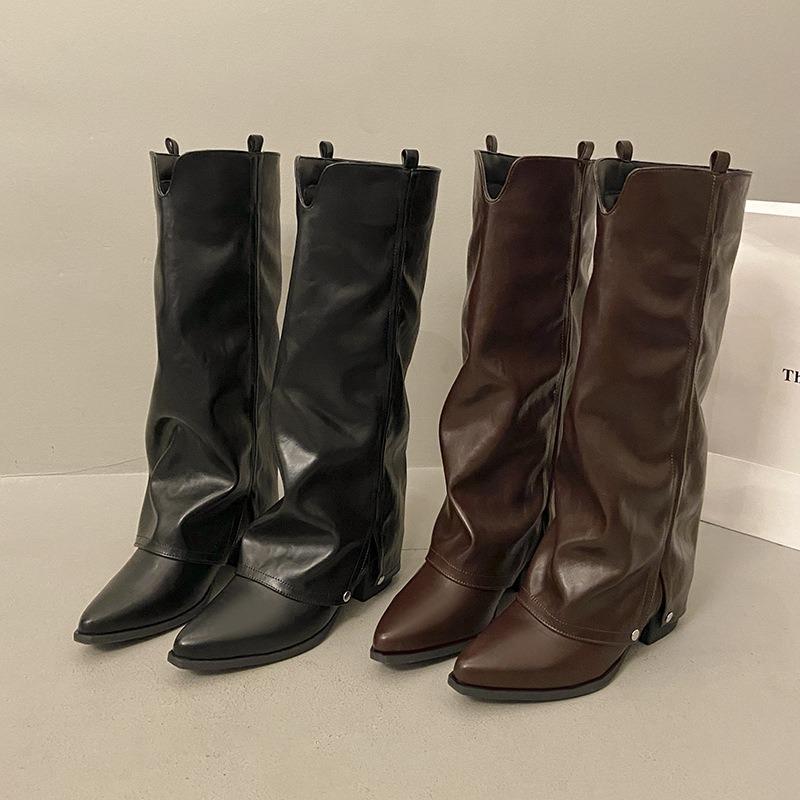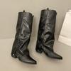 Pointed boots women's autumn and winter boots new women's boots but knee boots thick heel high heel western cowboy boots