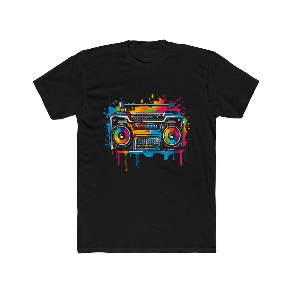 Boom Box Paint Drip Tee T-Shirt Clothing Music Lover Gift Graphic Tee Streetwear Shirt Retro Streetwear Short-sleeved Men's Tee