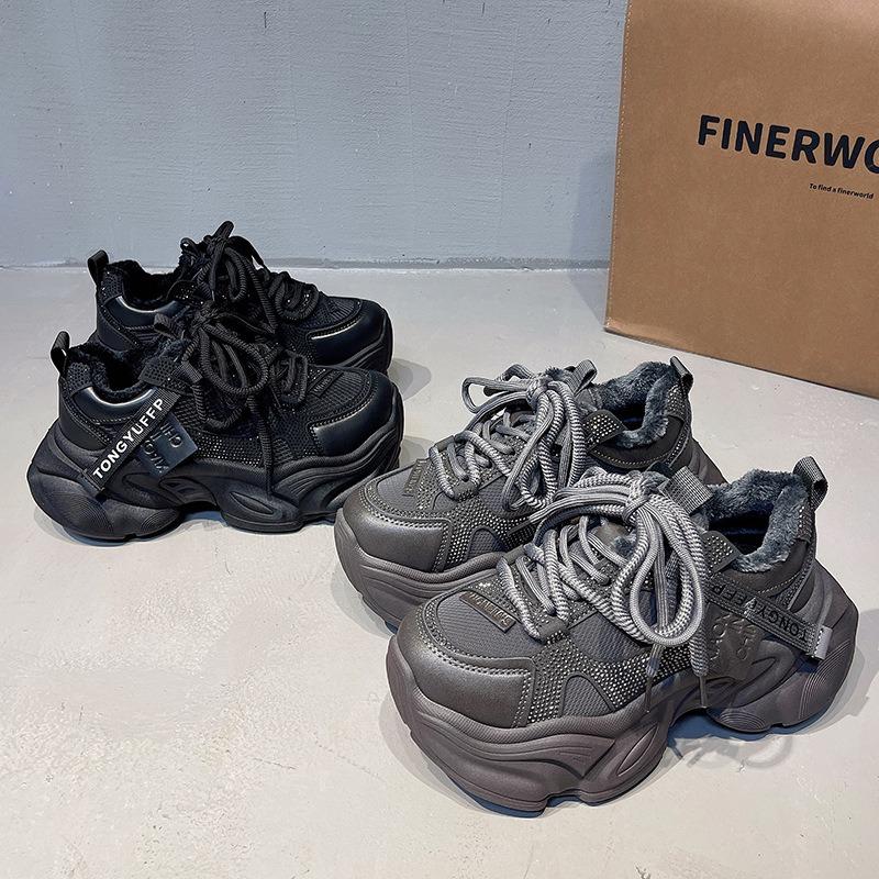 Height-increasing dad shoes women's platform autumn new versatile small man fleece warm belt drill sports shoes cotton shoes
