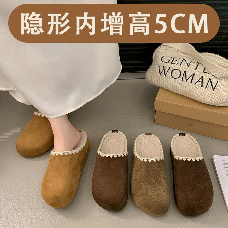 Inner heightening bag head woven half slippers women's autumn and winter piled thickened warm one pedal lazy shoes women