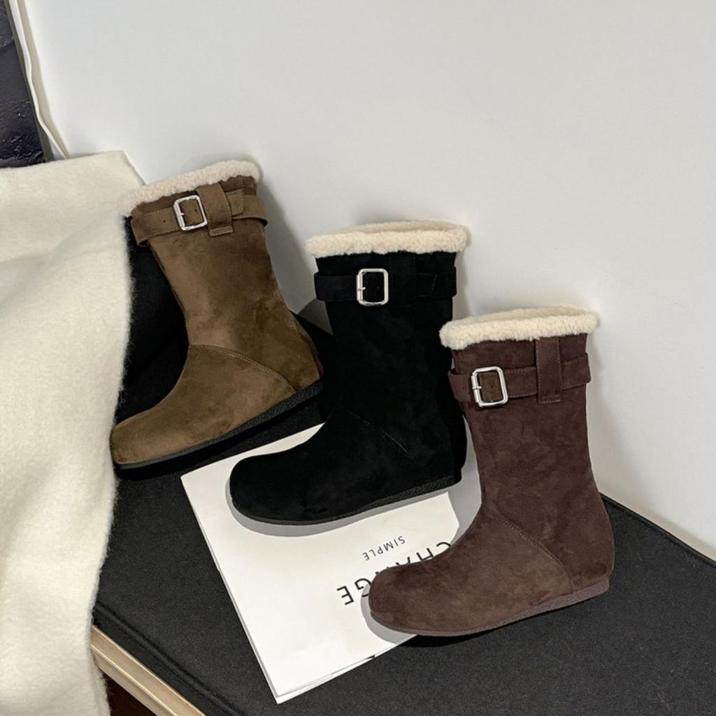 Women's elastic thick soles winter fur one warm anti-cold padded snow boots non-slip wear casual sports cotton boots fur shoes