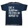 Eat Sleep Fix Eyes Repeat Funny Ophthalmologist T Shirt Men Cotton Humor Streetwear Tee Shirt Short Sleeve Unisex Loose Clothing