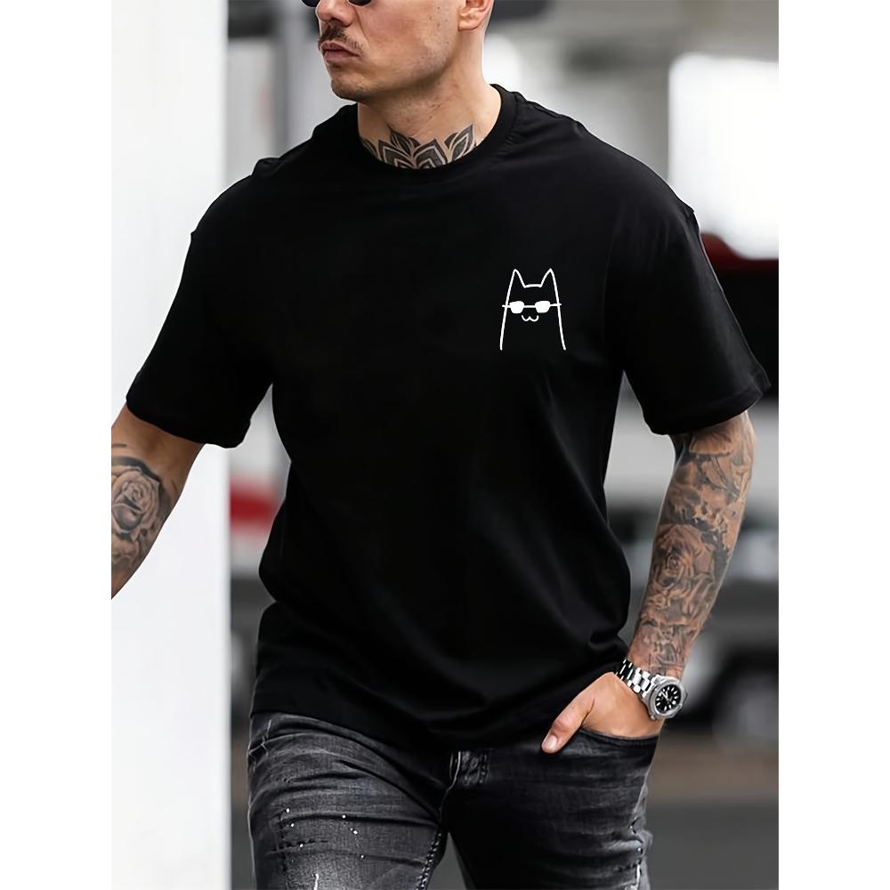 Cool Cat Line Art T-Shirt,Soft Breathable & Fade-Resistant, Classic Fit for Daily Casual Wear