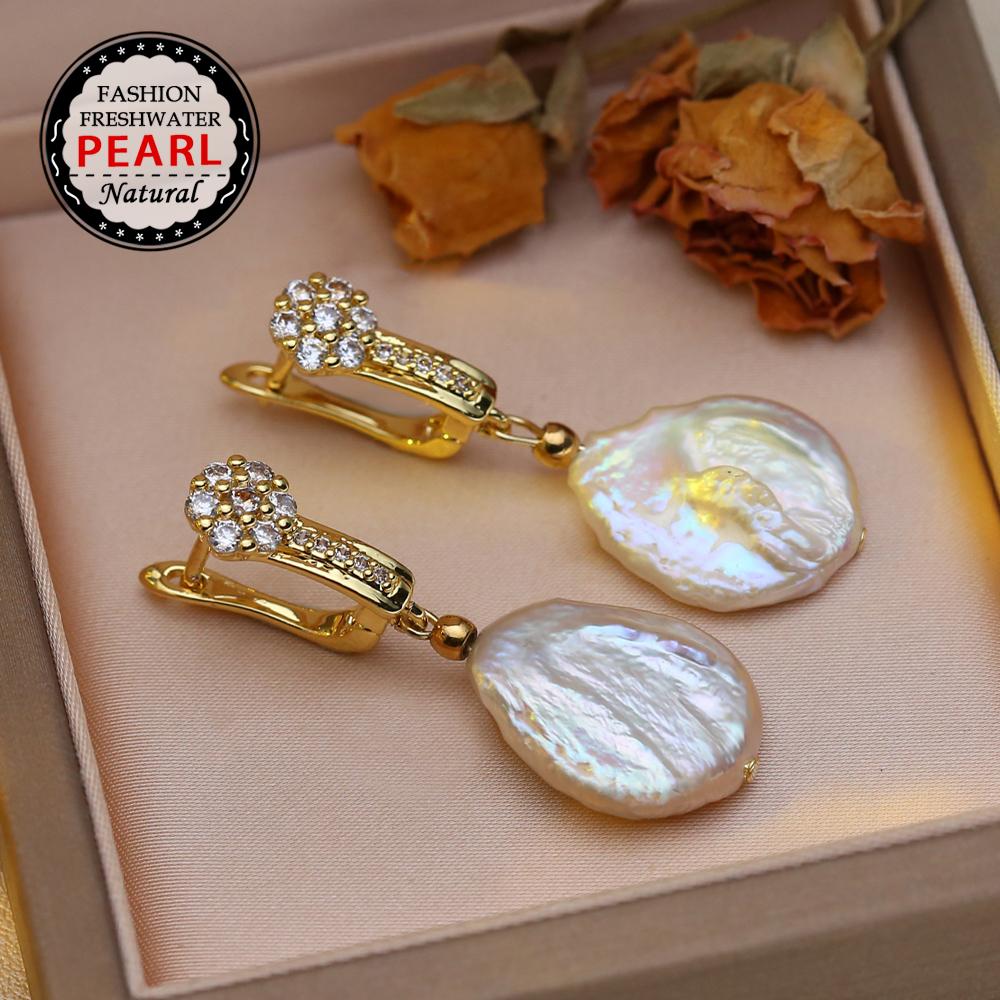 SENIKO Přírodní sladkovodní velké barokní perlové náušnice Módní kubické zirkonové perlové náušnice pro ženy, párty šperky