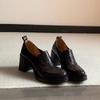 Leather retro thick heel single shoes women's autumn round head deep mouth old small high heel small leather shoes