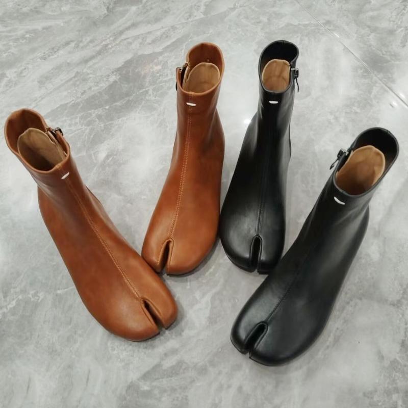 Split-toed pig's trotters women's boots niche skinny thick heel retro side zipper chelsea boots medium tube martin boots short boots