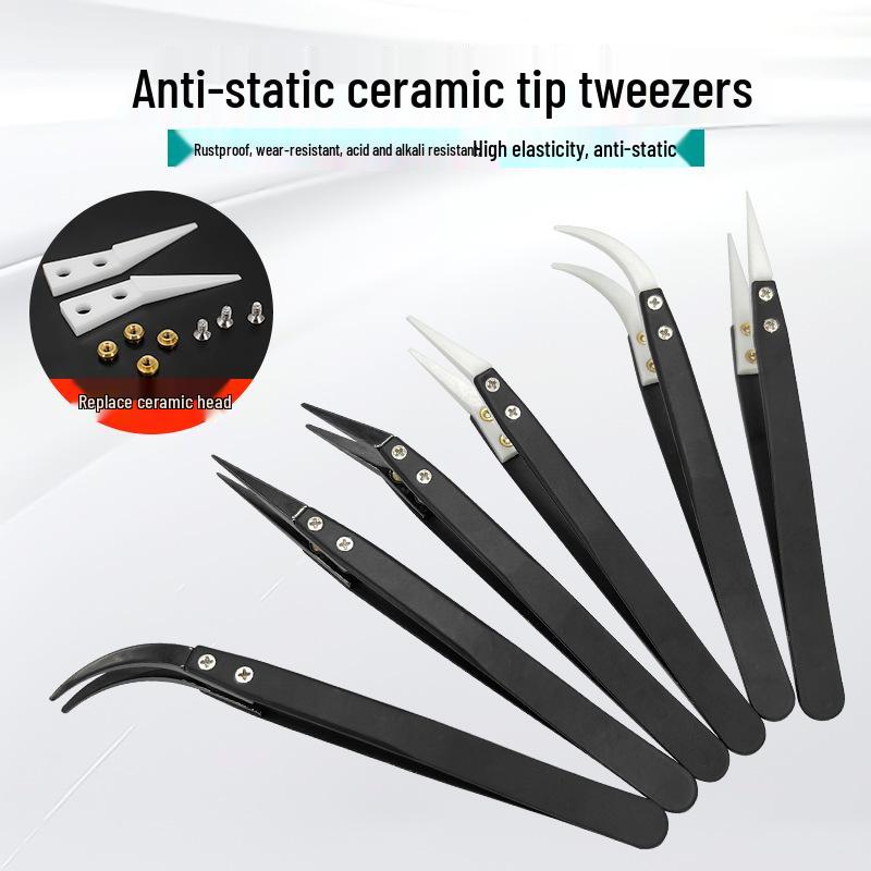 Vyměnitelné keramické pinzety pro vysokoteplotní pájení - Extra jemný hrot, nemagnetické, izolované pro opravu mobilních telefonů