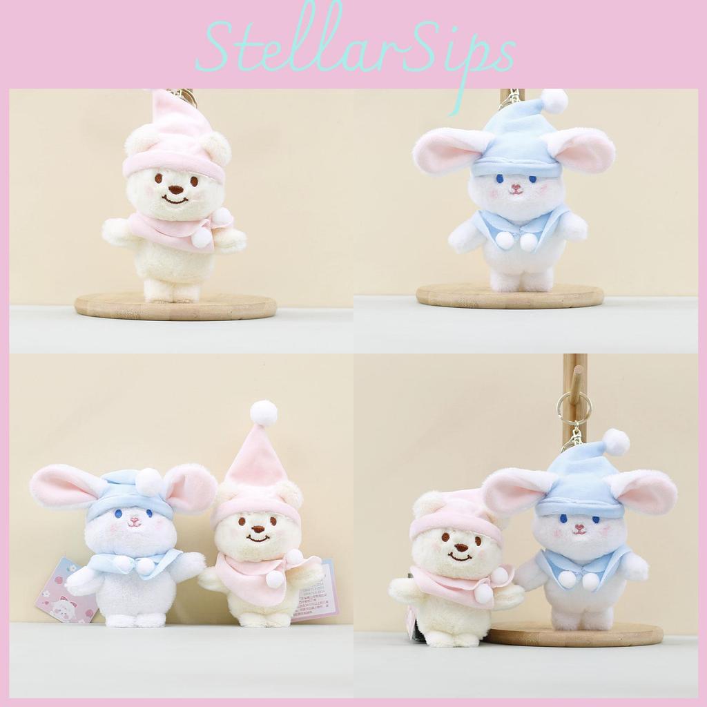 Adorable Design: The keychain features a charming soft bear and rabbit, both wearing festive Christmas hats, perfect for the holiday season.