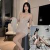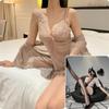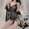 Průsvitná krajková noční košilka a svůdný síťovaný županový set pro ženy