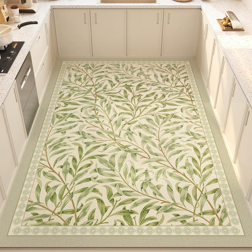 Kitchen Floor Mat Floral Plant Style Pvc Leather Non-slip Carpet Waterproof Oil-proof Foot Mats Large Area Home Decoration Rug
