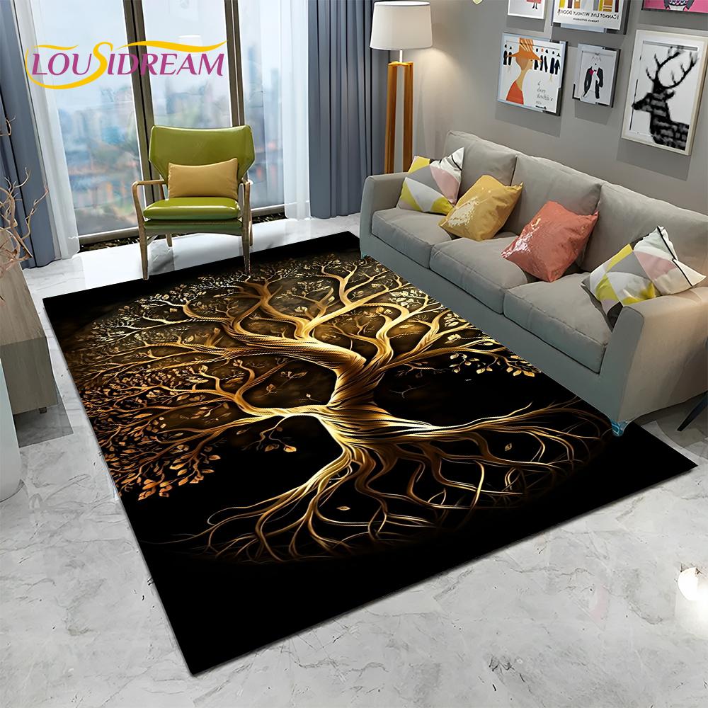 Přírodní strom života Viking Norse Yggdrasil Koberec pro domácí obývací pokoj Ložnice Pohovka Rohožka Dekor, Koberec pro děti Protiskluzová podložka
