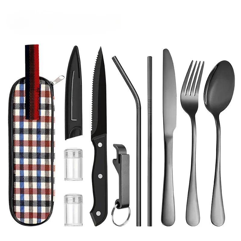 Nerezové příbory Nůž Vidlička Lžíce Steakový nůž Kořenka Brčko Venkovní Cestovní Přenosná Sada