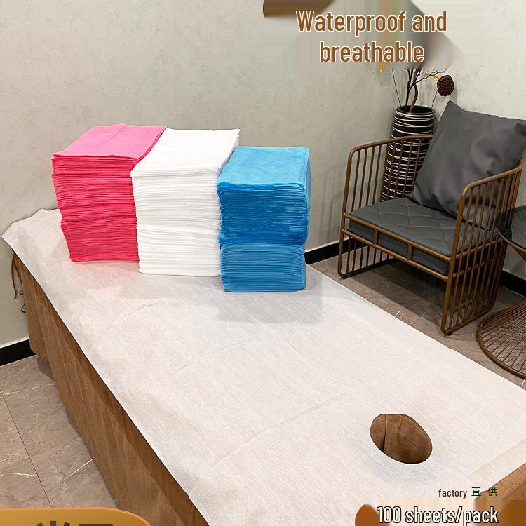 100 Disposable Non-Woven Waterproof & Oil-Proof Massage Bed Sheets with Hole - Thickened for Beauty Salons