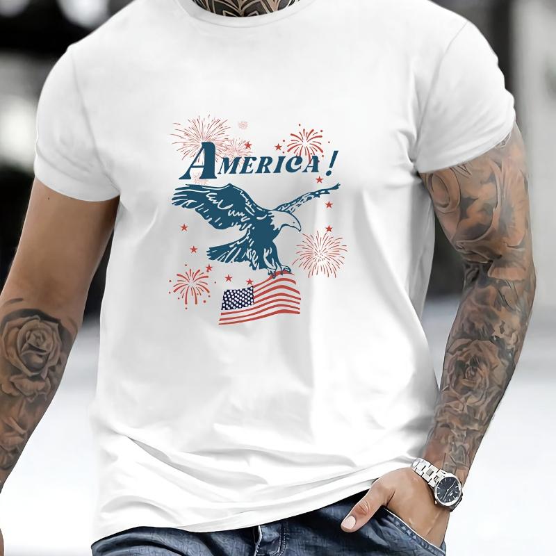 America Eagle & Fireworks Patriotic Print T-Shirt Breathable Cool, Comfortable Wear,Daily Casua