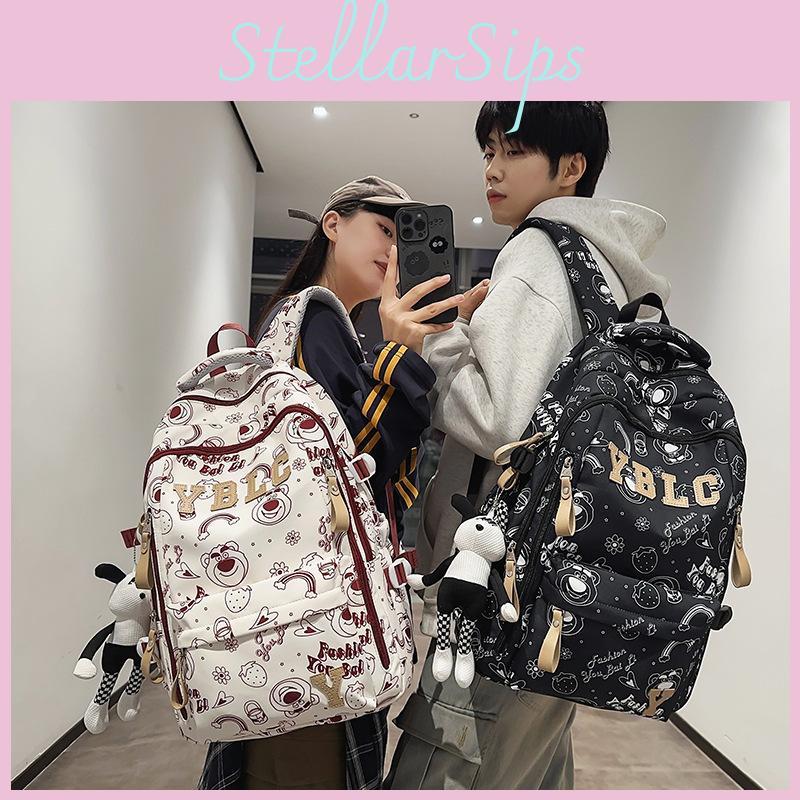 Teddy Bear Graffiti Printed Backpack Large Capacity Travel Bag Student Schoolbag
