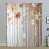 2Pcs Elegant White Rose Print Sheer Curtains With Rod Pocket – For Bedroom, Living Room & Kitchen