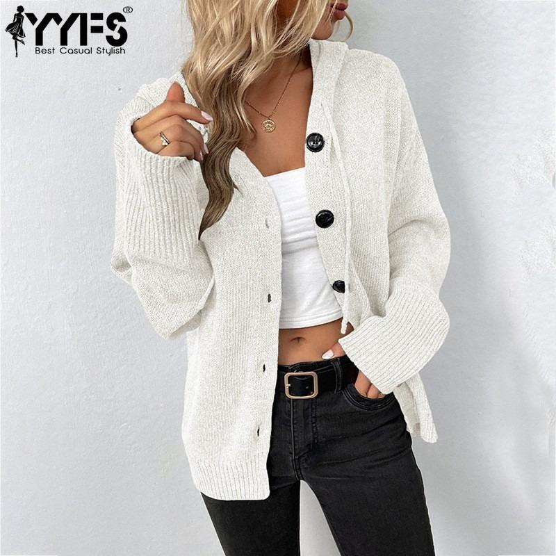 YYFS Dámská móda Ležérní podzim Zima Jednobarevné svetry s kapucí s dlouhým rukávem