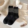 Women's Fair Isle Wool Mid-Calf Socks, Fleece-Lined, Thickened, Retro Christmas Style, Cozy for Autumn and Winter.