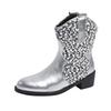Women's Wide Width Glitter Leather Boots, Slip-On Comfort Martin Boots, Sparkly Casual Ankle Booties for Women