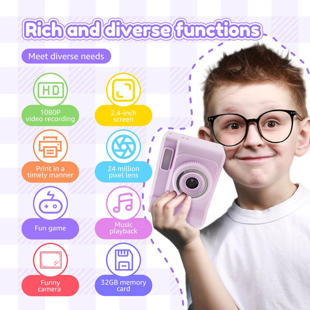 Instant Print Camera for Kids 1080P HD Video Camera with 32GB Child Birthday Festival Gifts Travel Selfie Digital Camera Toys