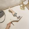 Sample to map OEM rhinestone transparent word with high heels, sandals women's versatile summer women's models