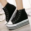 Dámské plátěné šněrovací boty s vysokým svrškem a skrytým podpatkem, s tlustou podrážkou a kulatou špičkou.