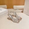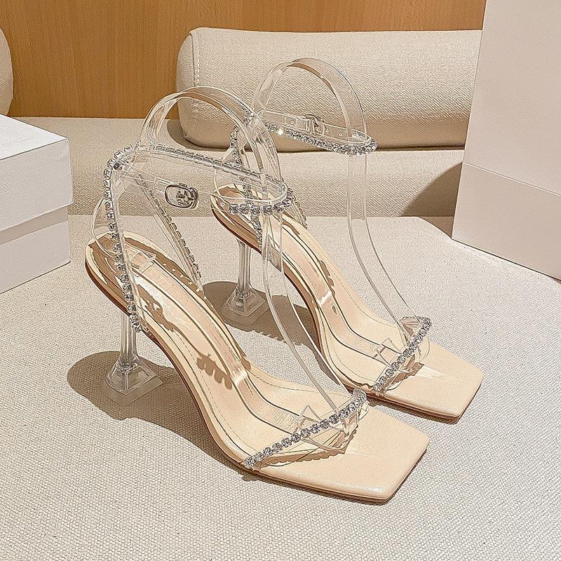 - Summer Fairy Square Head Silver Rhinestone Thin Belt Diamond Versatile One-word Belt High Heel Sandals Woman