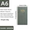 2026 A6 Kožený týdenní plánovač: Přeshraniční přenosný anglický diář a roční kalendářový zápisník
