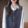 Dámská francouzská retro pletená vesta: Kulatý výstřih, tílko bez rukávů, podzimní vrstvený svetr 2025