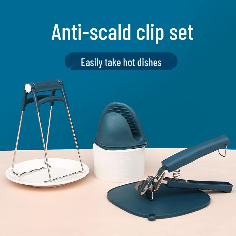 Žáruvzdorný protiskluzový zvedák na misky a talíře - Nerezový klip pro bezpečnou manipulaci