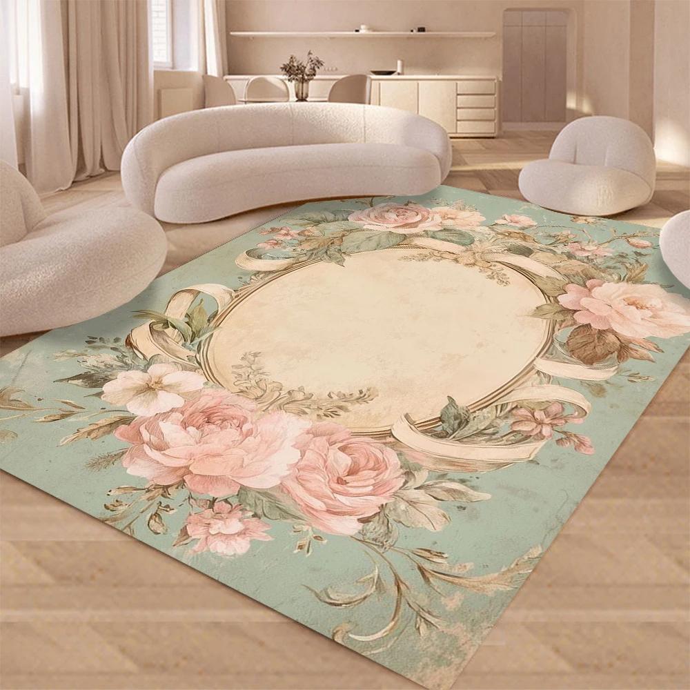 European Carpets Living Room Pastoral Flower Home Rug Large Bedroom Luxury Pattern Floor Mat Washable Non-slip Entryway Door Mat