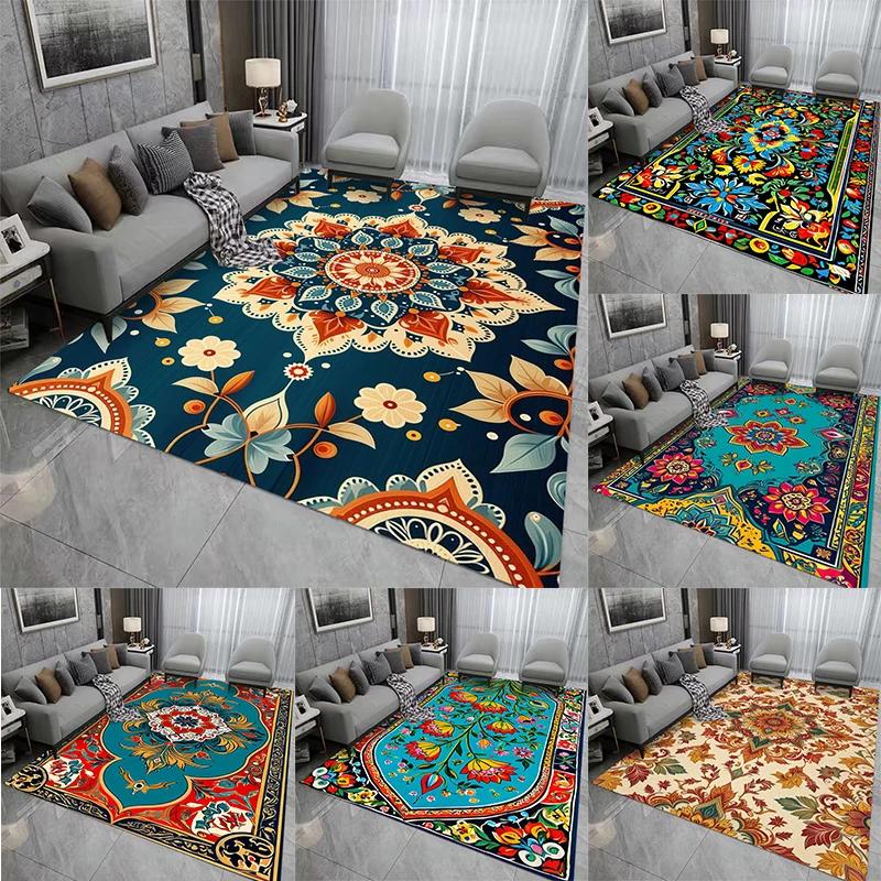 Retro Boho Perský Styl Květinový Koberec Obývací Pokoj Ložnice Balkon Pohovka Stůl Dveřní Rohožka Protiskluzová Prací v Pračce Domácí Podložka Dekor