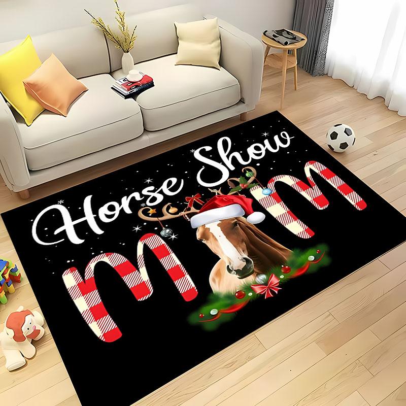 3D tištěný vánoční koberec s koněm pro domov, obývací pokoj, dětskou ložnici, pohovku, rohožka, kuchyňský podlahový koberec, protiskluzová dekorační podložka, teplý dárek