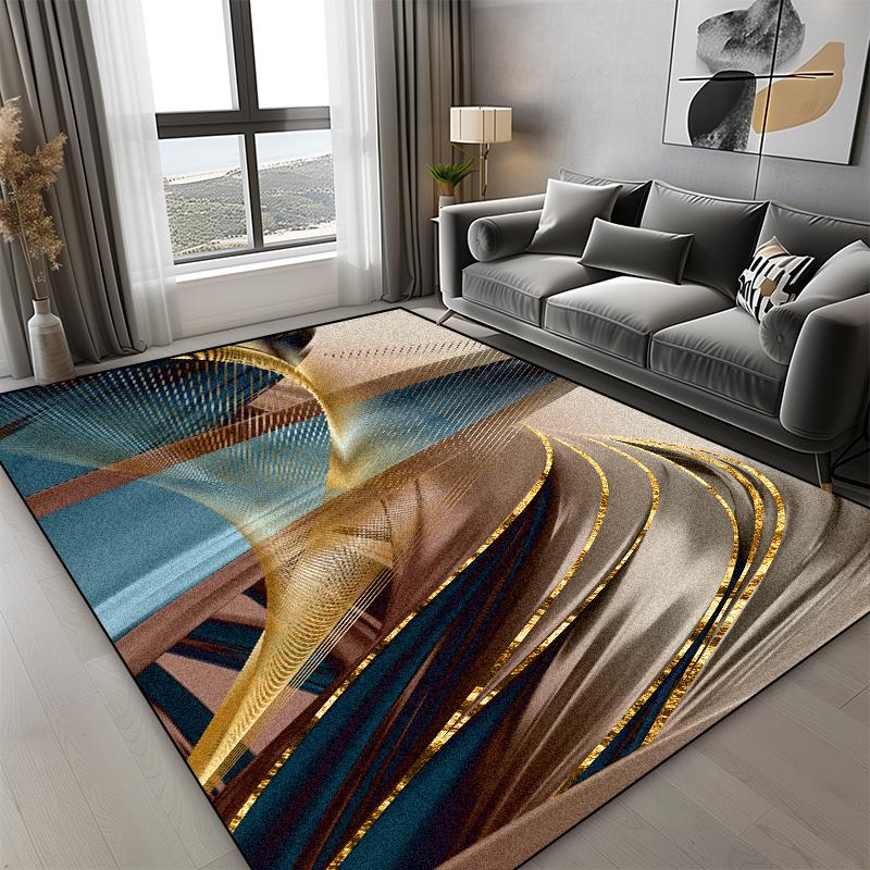 Severský moderní koberec se zlatou linií do obývacího pokoje, luxusní domácí dekorace, protiskluzový koberec velkých rozměrů pod pohovku, ložnice, šatna, vchodová rohožka