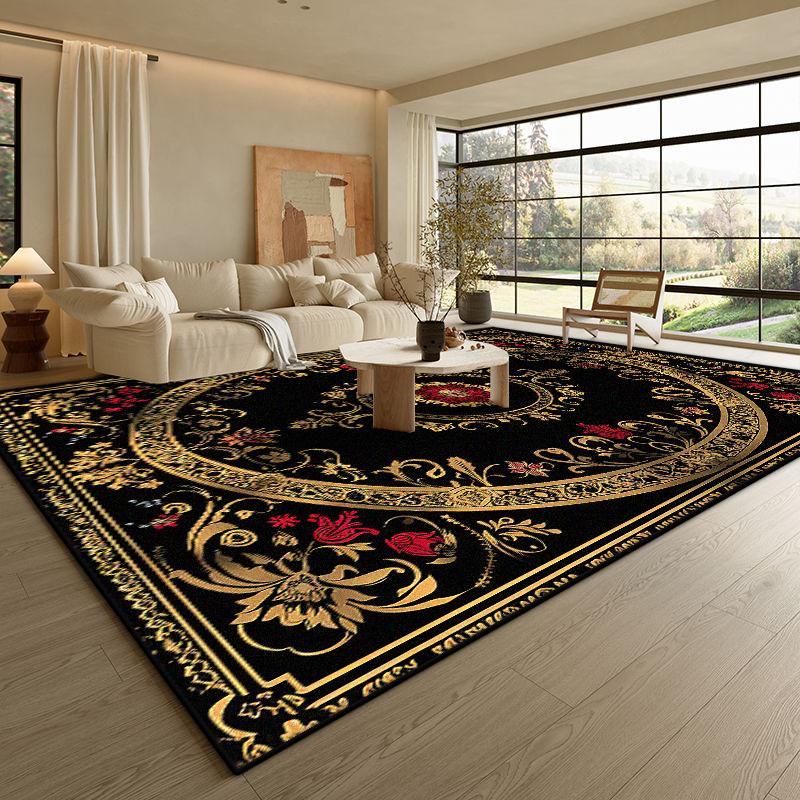 Moderní Černý Luxusní Koberec Obývací Pokoj Zlatý Okraj Protiskluzová Podložka pod Konferenční Stolky Měkký Skládací Kancelářský Salonek Dekor Koberec Snadno Čistitelný