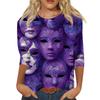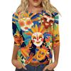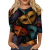 Dámský módní ležérní top s tříčtvrtečním rukávem a karnevalovým potiskem u krku